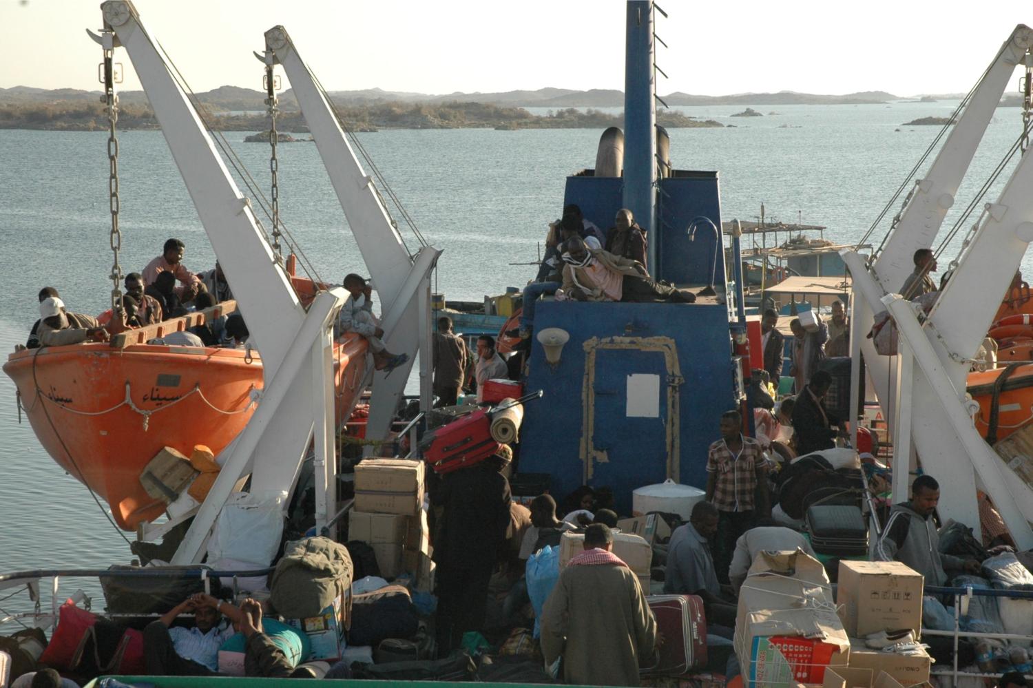 Es geht aufs Schiff. Nicht sehr vertrauenserweckend, offiziell Platz für geschätzt 100 Passagiere. Wir schätzen, dass wir, drei Russen und etwa 300 Sudanesen an Bord sind. Aber – wir sind an Bord.